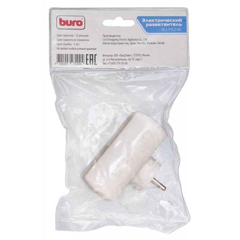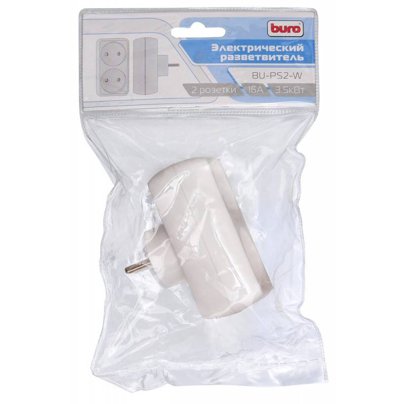 Сетевой разветвитель Buro BU-PS2-W (2 розетки) белый (пакет ПЭ)