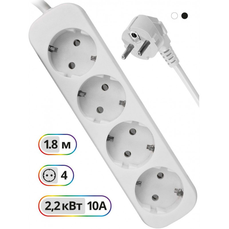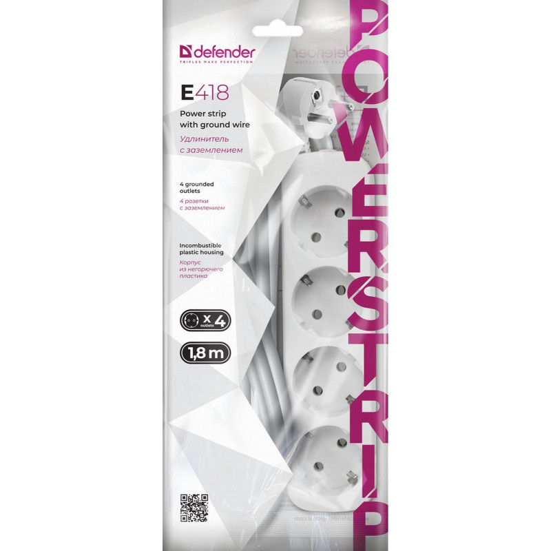 Сетевой удлинитель Defender E418 1.8м (4 розетки) белый (пакет ПЭ)