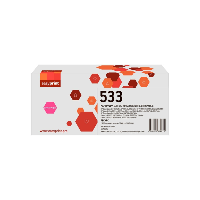 Картридж EasyPrint LH-533A U для HP CLJ CP2025/M451/M476/LBP7200Cdn 718M (2900 стр.) пурпурный, с чипом