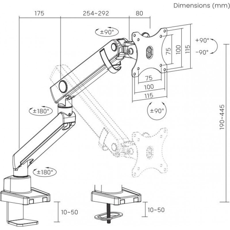 Кронштейн для мониторов Ultramounts UM709 черный 17"-32" макс.8кг крепление к столешнице поворот и наклон
