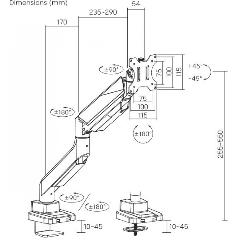 Кронштейн для мониторов Ultramounts UM717 серебристый 17"-49" макс.18кг крепление к столешнице поворот и наклон