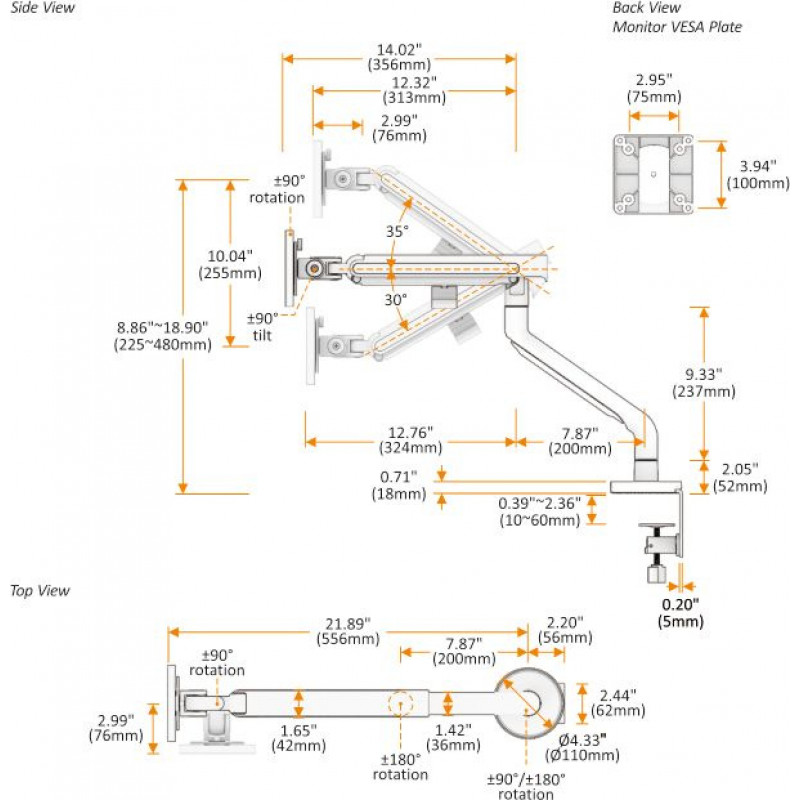 Кронштейн для мониторов Ultramounts UM725B черный 17"-32" макс.9кг крепление к столешнице поворот и наклон