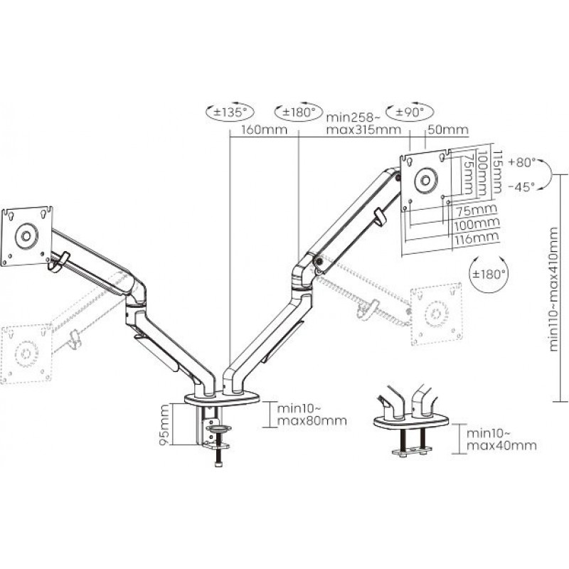 Кронштейн для мониторов Ultramounts UM735BL черный/серый 17"-27" макс.7кг крепление к столешнице поворот и наклон
