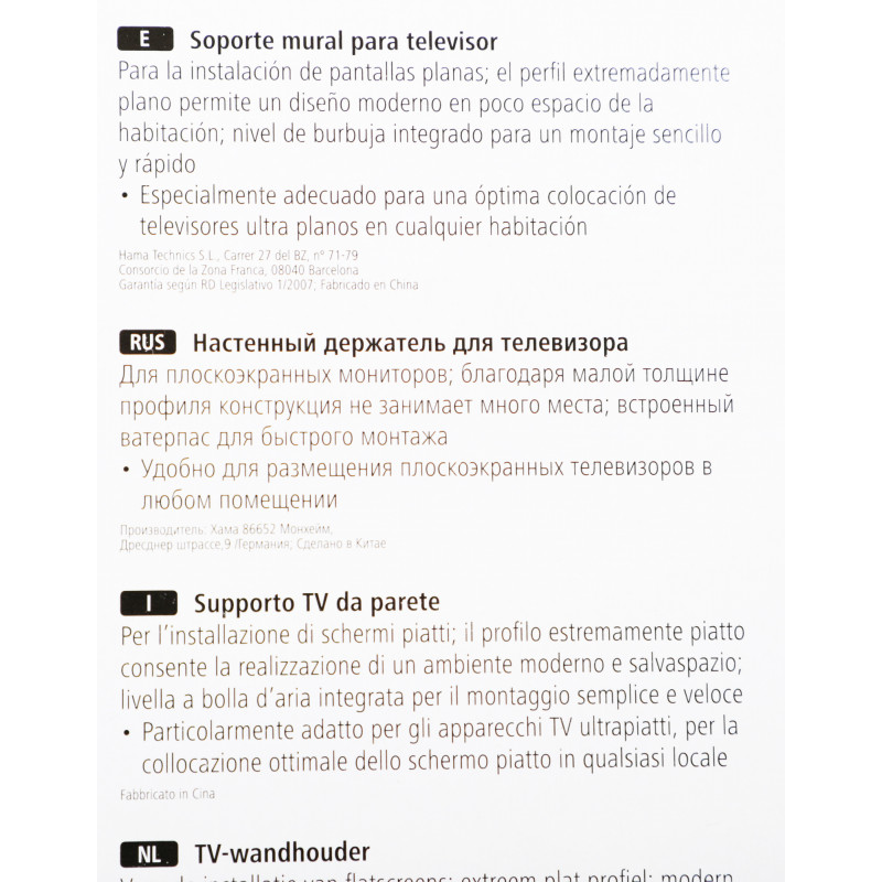 Кронштейн для телевизора Hama H-108770 черный 32"-56" макс.30кг настенный фиксированный