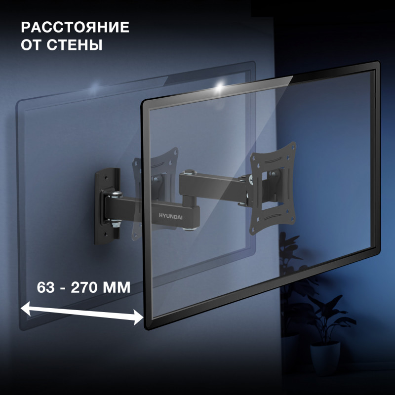 Кронштейн для телевизора Hyundai GL-N1 черный 10"-27" макс.15кг настенный поворотно-выдвижной и наклонный