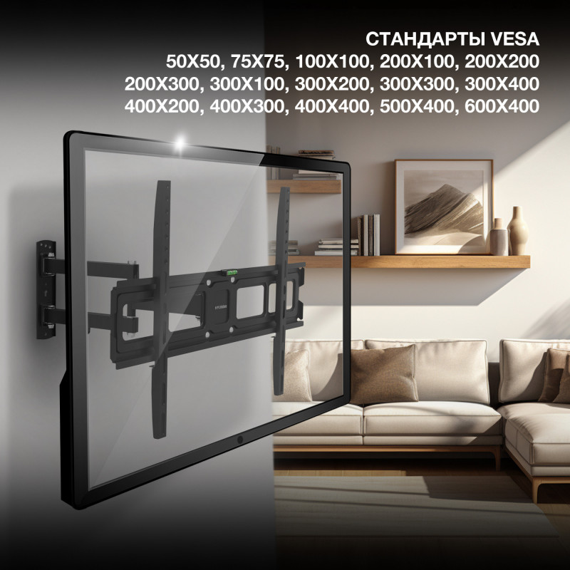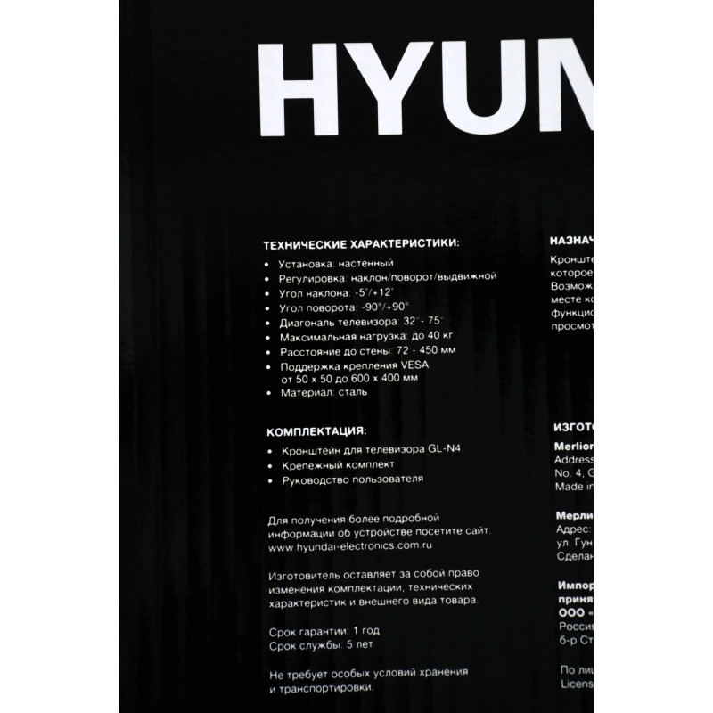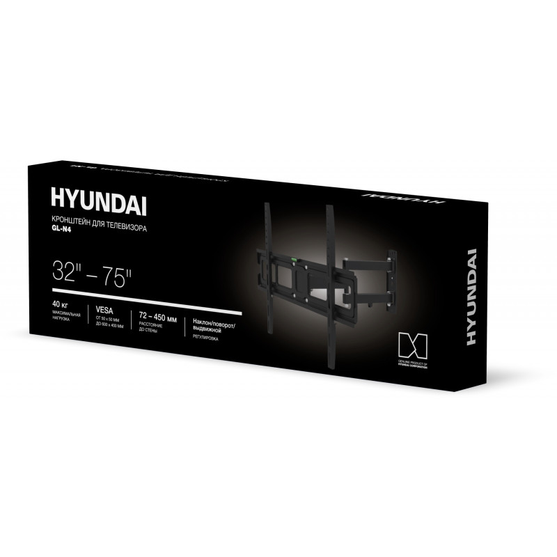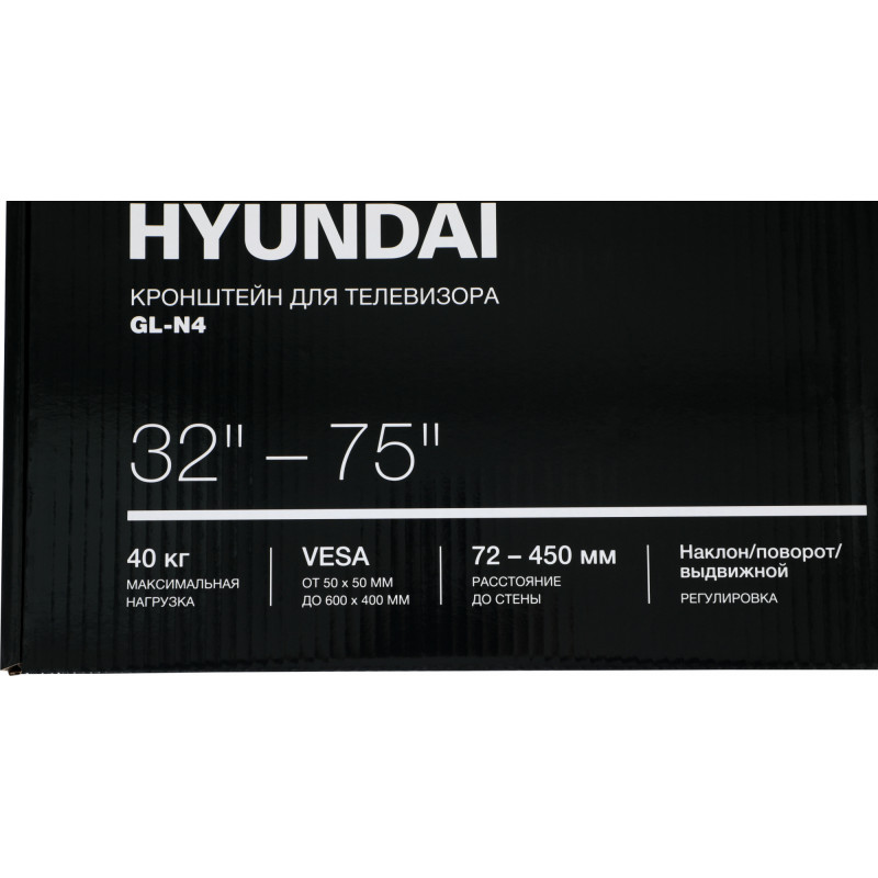 Кронштейн для телевизора Hyundai GL-N4 черный 32"-75" макс.40кг настенный поворотно-выдвижной и наклонный