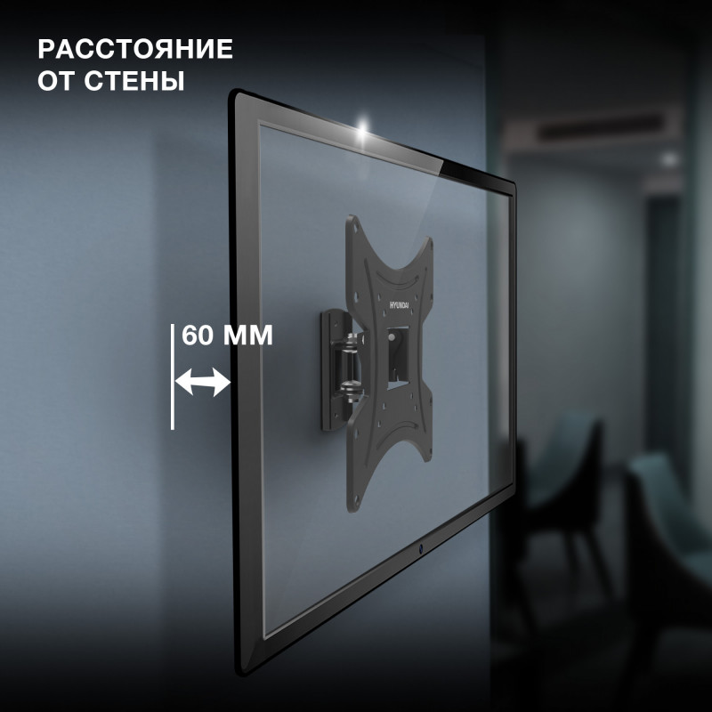 Кронштейн для телевизора Hyundai GL-R2 черный 13"-48" макс.20кг настенный поворот и наклон