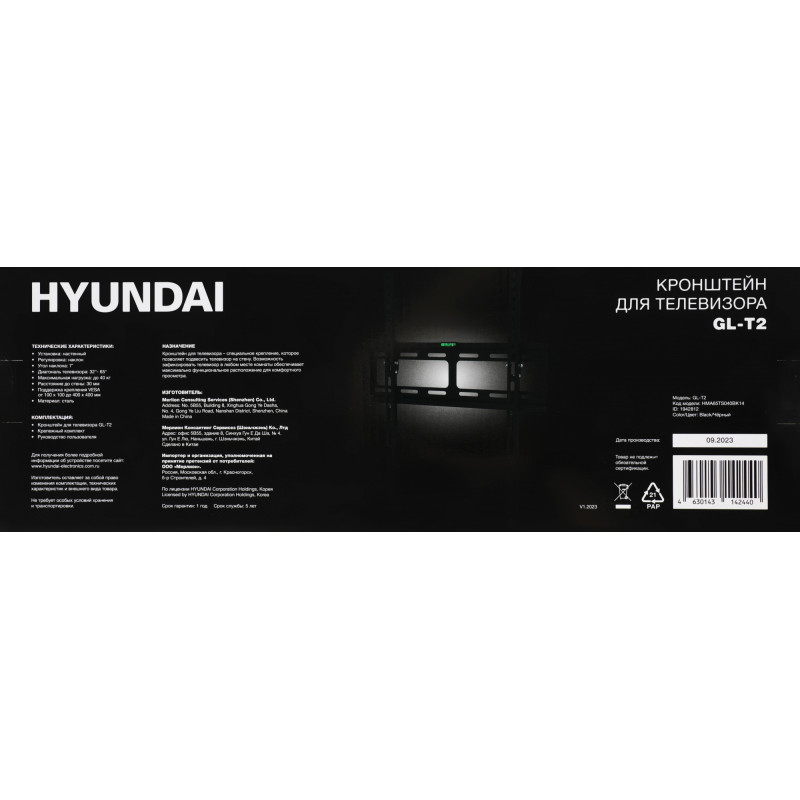 Кронштейн для телевизора Hyundai GL-T2 черный 32"-65" макс.40кг настенный наклон