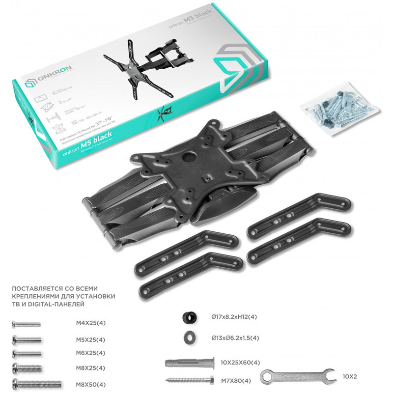 | Описание | Настенный наклонно-поворотный кронштейн ONKRON M5 в черном цвете предназначен для дисплеев с диагона |
