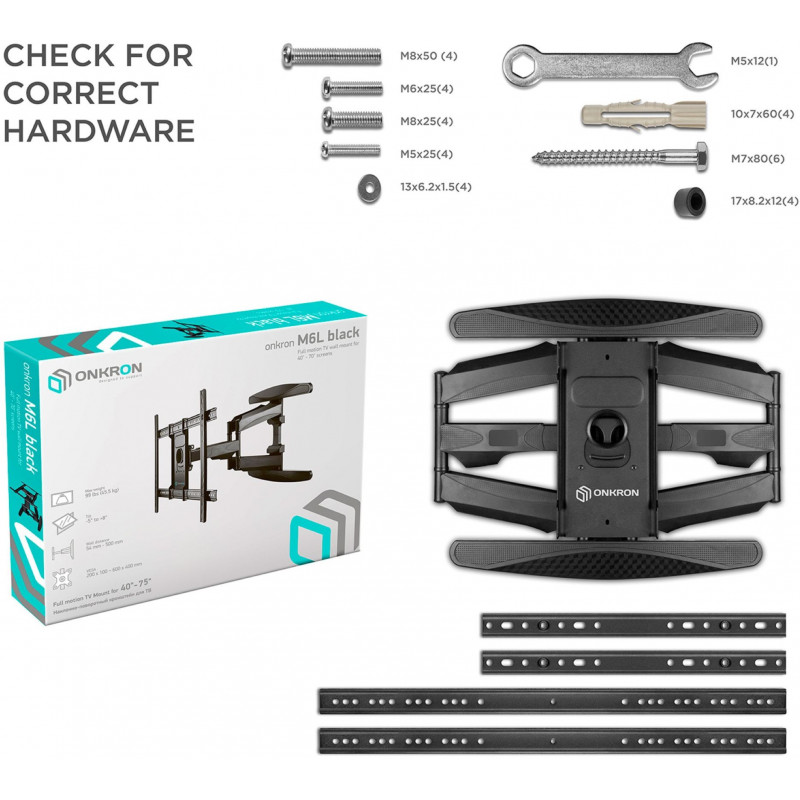 Кронштейн для телевизора Onkron M6L черный 40"-75" макс.45.5кг настенный поворот и наклон