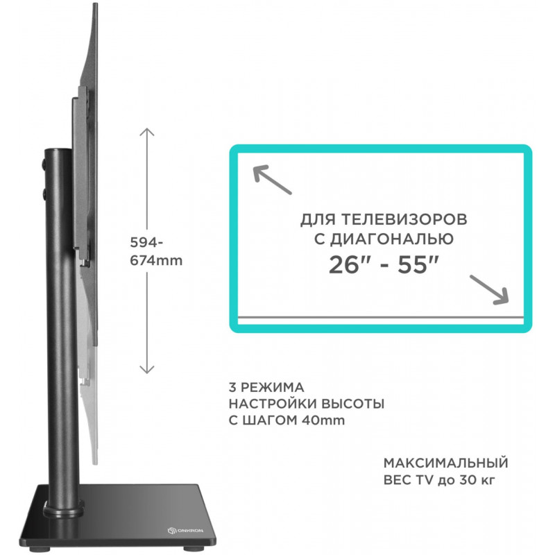 | Описание | Настольная подставка ONKRON PT1 предназначена для ТВ с диагональю от 26 до 55 дюймов. Максимальный в |