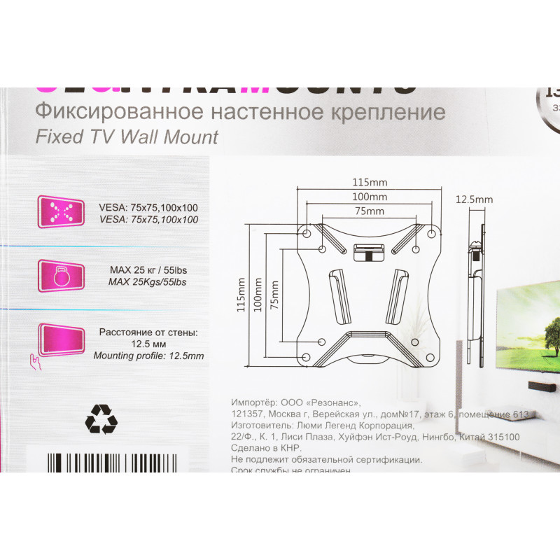 | Описание | Ультратонкое настенное крепление позволяет разместить телевизор максимально близко к стене. Кронштей |