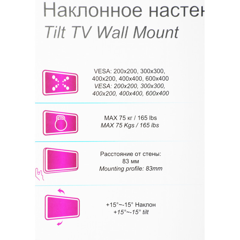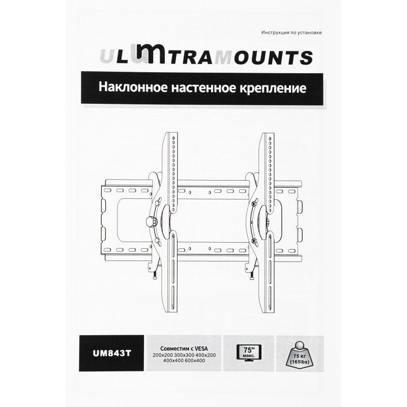 Кронштейн для телевизора Ultramounts UM843T черный 37"-75" макс.75кг настенный наклон
