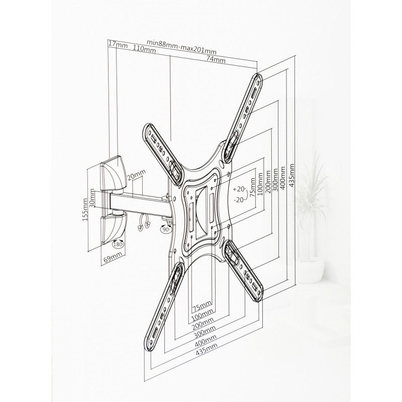 Кронштейн для телевизора Ultramounts UM868 черный 23"-55" макс.35кг настенный поворот и наклон