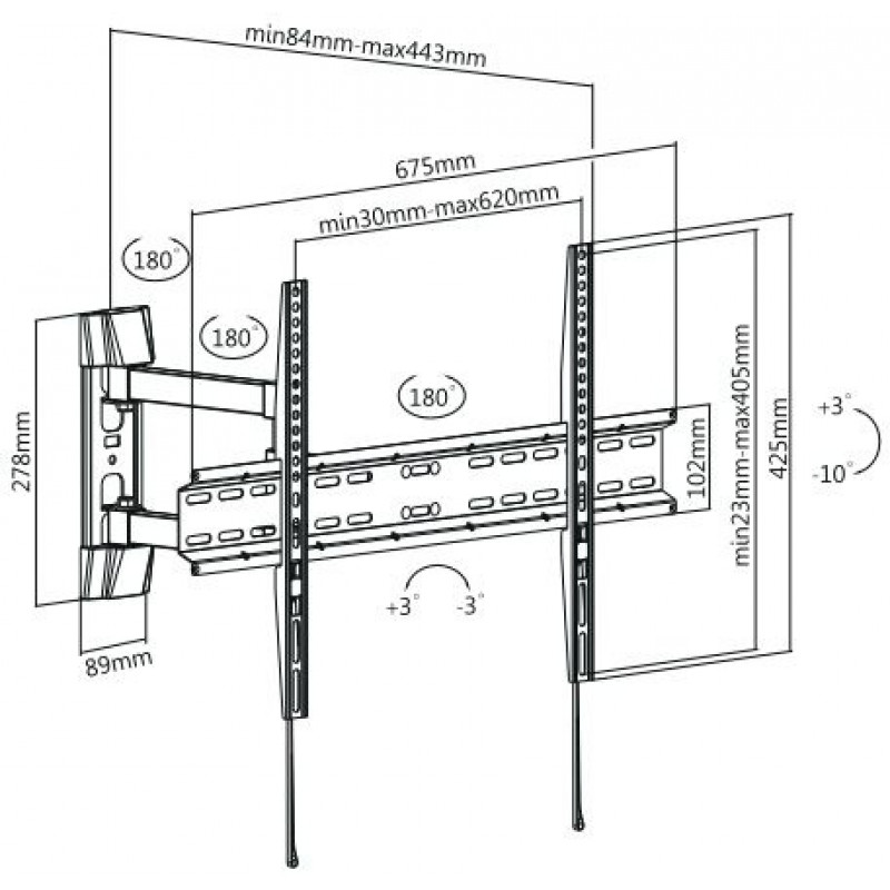 | Описание | Для использования с телевизорами диагональю 37"-70", весом до 35 кг. Возможен наклон до 10 градусов. |
