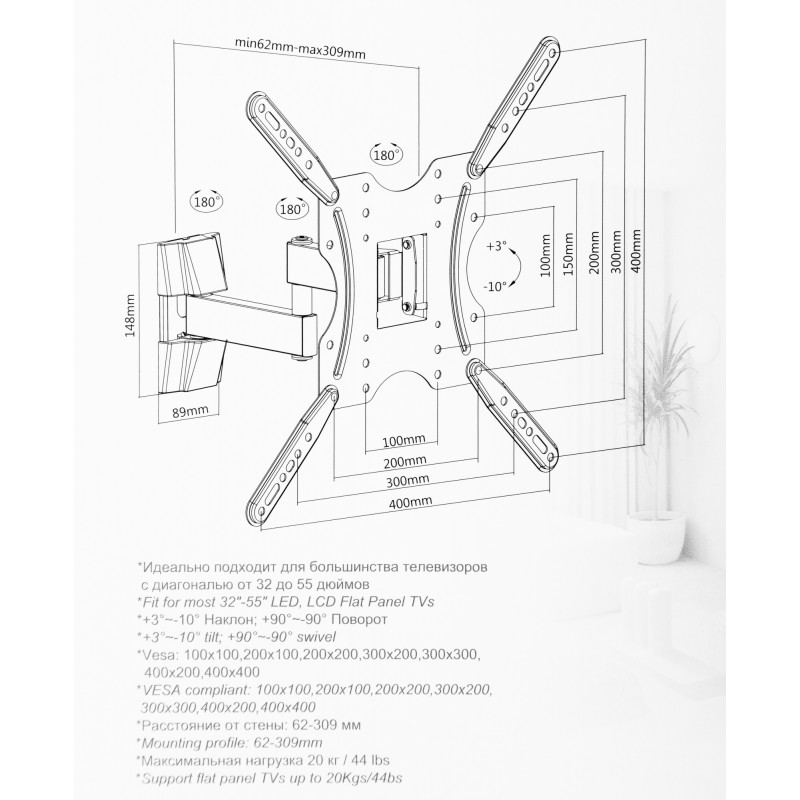 | Подходит для 55" | ДА |